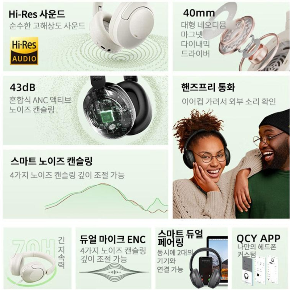 개인 적으로 생각하는 단점으로는 QCY H4는 차음 기능을 제공하지만, 고가의 프리미엄 헤드폰에 비해 차음 효과가 다소 떨어질 수 있습니다. 특히 매우 시끄러운 환경에서는 주변 소음을 완전히 차단하지 못하는 경우가 있습니다.