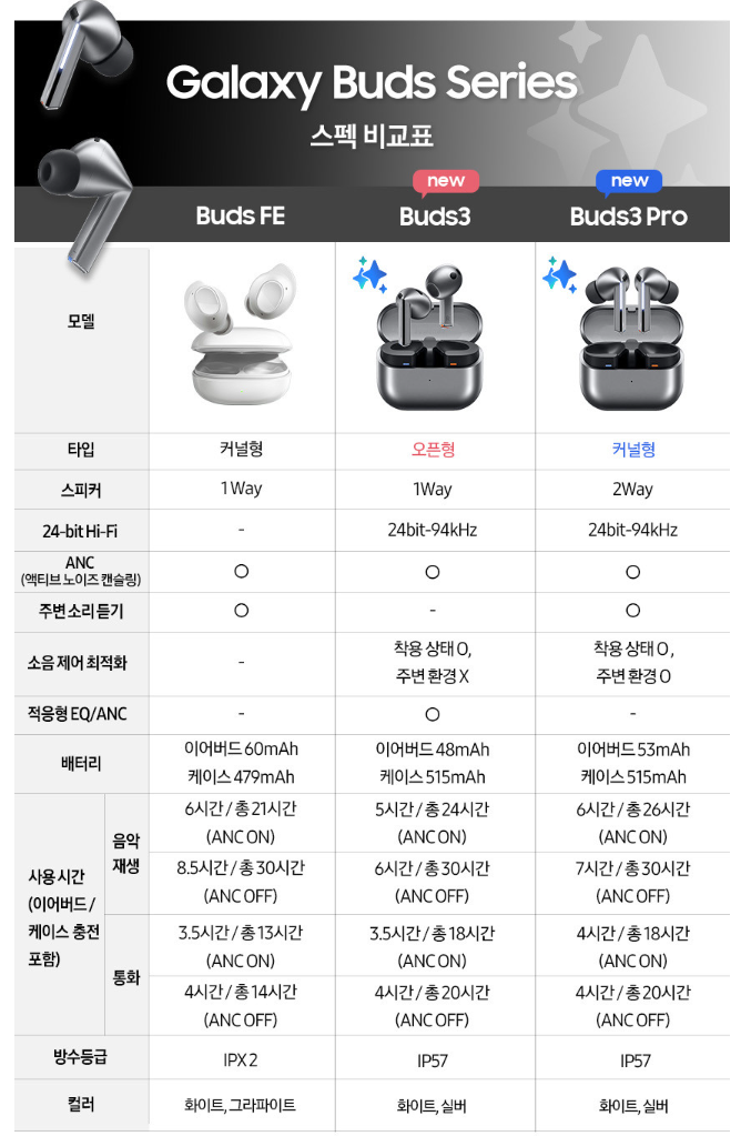 Sony WF-1000XM4는 약 30만 원대*의 가격에 위치한 프리미엄 블루투스 이어폰으로, LDAC 고해상도 오디오 코덱을 지원하며 더 긴 배터리 수명과 강력한 ANC 성능을 제공합니다. 하지만 삼성 Buds 3 Pro는 이러한 고급 기능을 거의 동일하게 제공하면서도 가격은 상대적으로 저렴해 가격 대비 성능에서 더 우수하다는 평가를 받습니다.