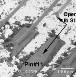 - Wedge Stitch lifting : Wedge bonding 된 부분이 떨어지는 상태로 bond pad나 leadfinger의 오염 잘못된 parameter 세팅 등이 유발시키다.