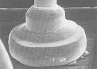 Aluminum wedge bonding에서는 그림 3. 와 같은 wedge tool이 사용되며 wire를 일정한 힘으로 기판 위로 누르고 있는 동안 초음파 에너지가 정해진 시간 동안 wire에 가해지게 되면 그림 4. 와 같이 기판에 밀착되어 첫 번째 bonding을 하게 된다. 그다음 리드선을 따라 다음 지점으로 wire를 이동시킨 후 기판에 wire를 누른 상태에서 초음파를 가하여 기판에 밀착시키고 나머지 부분을 끊어 내어 bonding을 마무리한다.