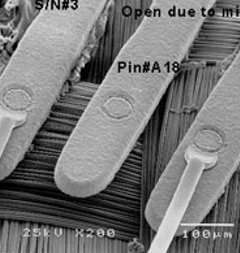 - Ball bonding lift : 실리콘 칩으로부터 접착된 ball 부분이 떨어진 상태로 bond pad가 오염되었거나 잘못된 wire parameter 세팅 등으로 발생된다.