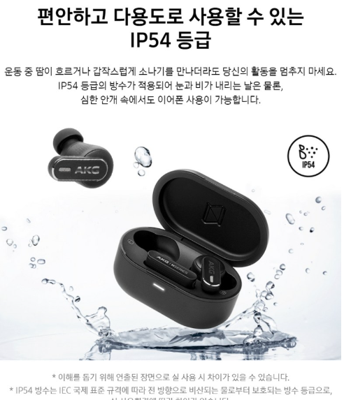 AKG N5 블루투스 이어폰은 IPX4 방수등급을 지원합니다. 땀이나 가벼운 비 정도는 충분히 견딜 수 있기 때문에, 운동이나 비가 오는 날에도 걱정 없이 사용할 수 있습니다. 다만, 물에 완전히 잠길 수 있는 환경에서는 사용할 수 없으므로 방수 성능에 대해 어느 정도 제한이 있다는 점은 염두에 두어야 합니다.