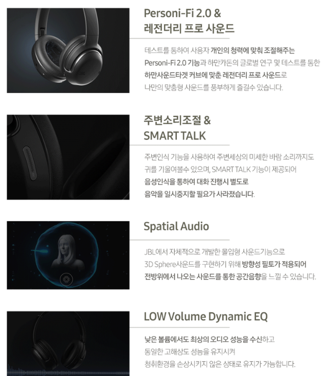 - 고음질 사운드: JBL만의 독자적인 사운드 기술로 다양한 음악 장르에서 뛰어난 성능 발휘.