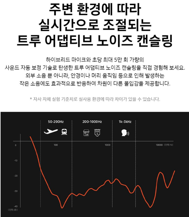 - 강력한 노이즈 캔슬링: 소음 차단 기능이 우수해 다양한 환경에서 깨끗한 음악 감상 가능.