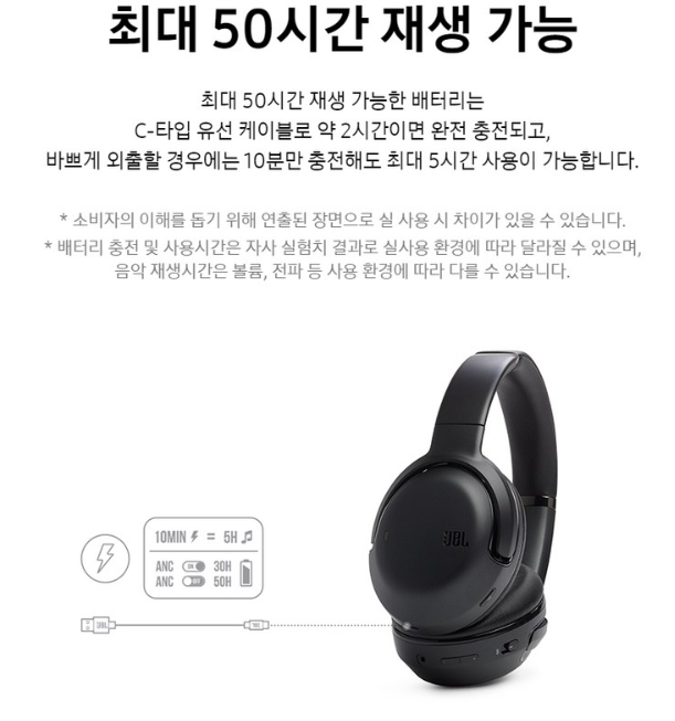 1.4. 배터리 성능과 충전 기능 JBL TOUR ONE M2는 한 번 충전으로 최대 50시간의 재생 시간을 자랑하며, 빠른 충전 기능을 통해 10분 충전으로 약 2시간의 사용이 가능합니다. 이는 장거리 여행이나 긴 시간 동안 음악을 듣는 사용자에게 아주 유리한 점입니다. USB-C 포트를 이용한 충전 방식은 빠르고 편리하며, 여행 중에도 손쉽게 충전할 수 있습니다.