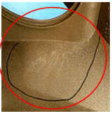 제품의 광택이 너무 반짝이거나 광택이 나지 않는 경우로 흔히 제품의 두께 차이가 심할 때 자주 발견됩니다. 보통 제품의 유동성이 부족하거나 휘발성의 소재, 금형의 표면이 거칠거나 이물질이 많을 경우 발생됩니다. 사출의 속도를 증가시키거나 금형과 소재의 온도를 증가 금형 표면의 다듬질을 좋게 개선하여 해결할 수 있습니다.
